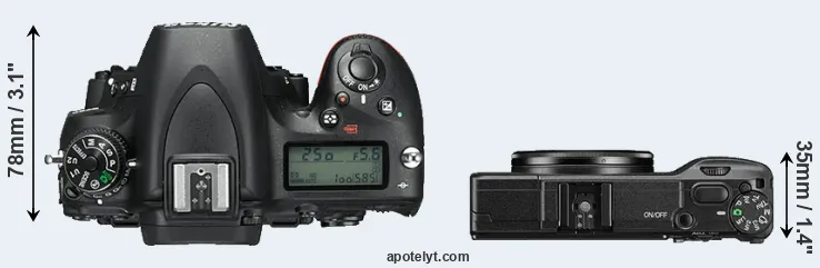 The above size and weight comparisons are to some extent incomplete and possibly misleading, as the GR II has a lens built in, whereas the D750 is an interchangeable lens camera that requires a separate lens. Attaching the latter will add extra weight and bulk to the setup. You can compare the optics available for the D750 and their specifications in the Nikon Lens Catalog.