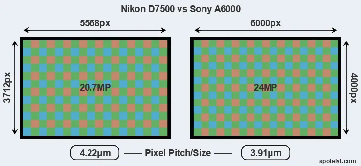 | Sensor Specs | Nikon D7500 | Sony A6000 |