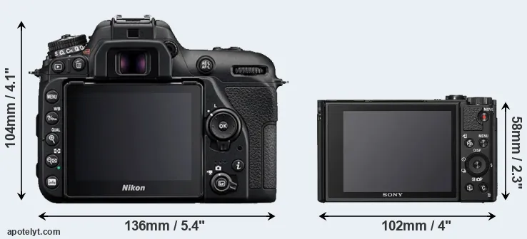 The above size and weight comparisons are to some extent incomplete and possibly misleading, as the HX95 has a lens built in, whereas the D7500 is an interchangeable lens camera that requires a separate lens. Attaching the latter will add extra weight and bulk to the setup. You can compare the optics available for the D7500 and their specifications in the Nikon Lens Catalog.