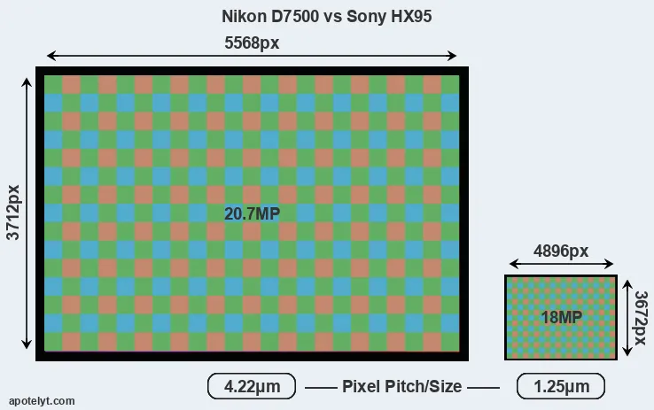 | Sensor Specs | Nikon D7500 | Sony HX95 |