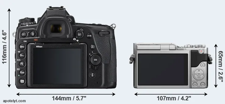 The side-by-side display below illustrates the physical size and weight of the Nikon D780 and the Panasonic GX850. The two cameras are presented according to their relative size. Three consecutive perspectives from the front, the top, and the back are available. All width, height and depth measures are rounded to the nearest millimeter.