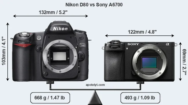 | Body Specs | Nikon D80 | Sony A6700 |