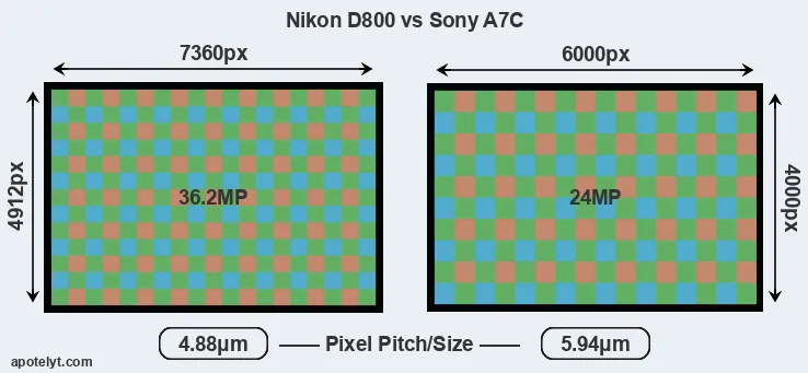 | Sensor Specs | Nikon D800 | Sony A7C |