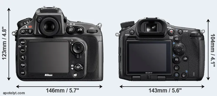 Going beyond this snapshot of core features and characteristics, what are the differences between the Nikon D800 and the Sony Alpha ALT-A99 II? Which one should you buy? Read on to find out how these two cameras compare with respect to their body size, their imaging sensors, their shooting features, their input-output connections, and their reception by expert reviewers.