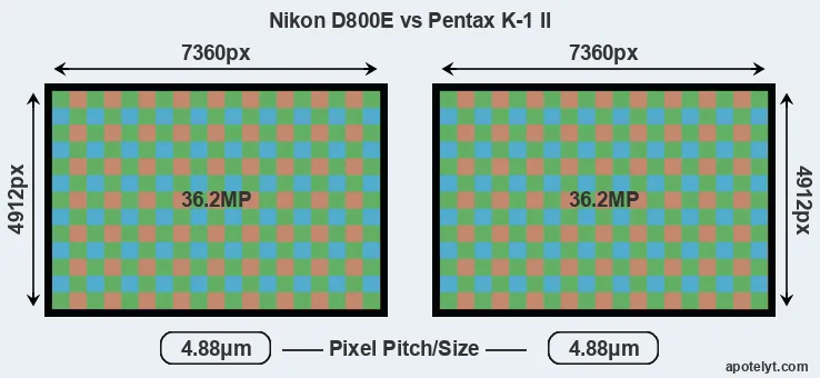 | Sensor Specs | Nikon D800E | Pentax K-1 II |