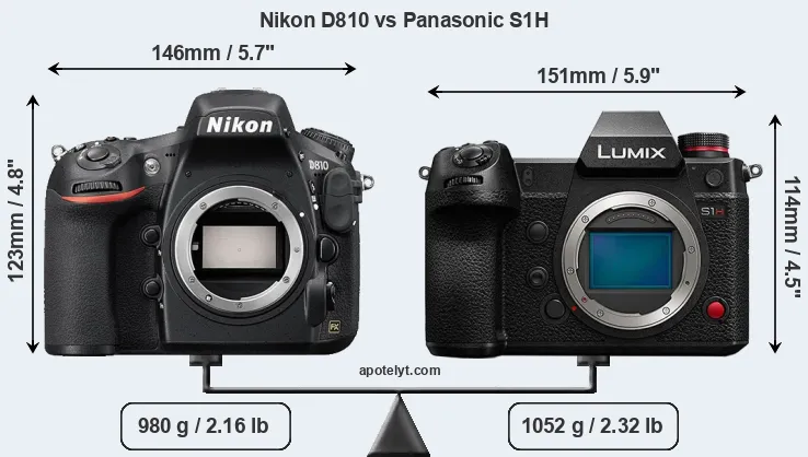 If the front view area (width x height) of the cameras is taken as an aggregate measure of their size, the Panasonic S1H is somewhat smaller (4 percent) than the Nikon D810. However, the S1H is markedly heavier (7 percent) than the D810. In this context, it is worth noting that both cameras are splash and dust-proof and can, hence, be used in inclement weather conditions or harsh environments.