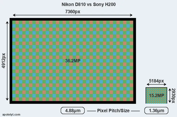 | Sensor Specs | Nikon D810 | Sony H200 |
