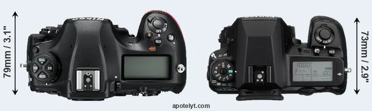 The side-by-side display below illustrates the physical size and weight of the Nikon D850 and the Pentax K-5. The two cameras are presented according to their relative size. Three consecutive perspectives from the front, the top, and the back are available. All width, height and depth dimensions are rounded to the nearest millimeter.