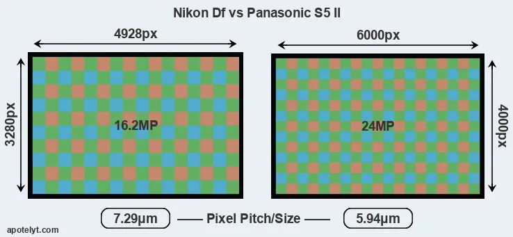| Sensor Specs | Nikon Df | Panasonic S5 II |