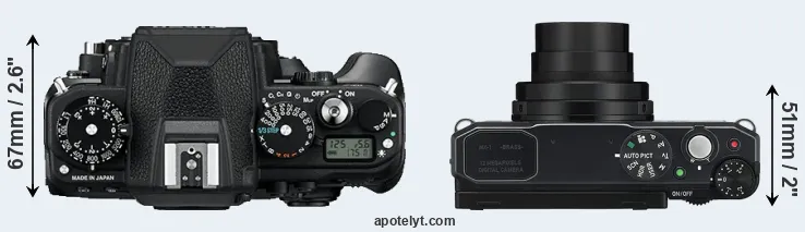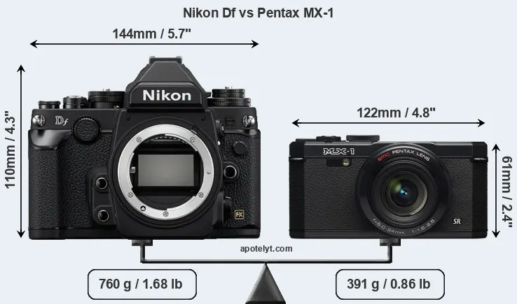 Size Nikon Df vs Pentax MX-1
