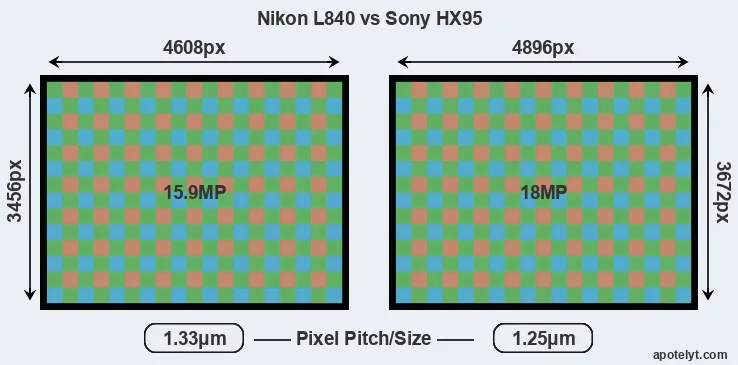 | Sensor Specs | Nikon L840 | Sony HX95 |