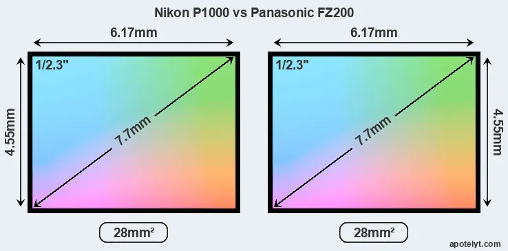 While the two cameras under review share the same sensor size, the P1000 offers a higher resolution of 15.9 megapixels, compared with 12 MP of the FZ200. This megapixels advantage translates into a 15 percent gain in linear resolution. On the other hand, these sensor specs imply that the P1000 has a higher pixel density and a smaller size of the individual pixel (with a pixel pitch of 1.33μm versus 1.53μm for the FZ200). In this context, it should be noted, however, that the P1000 is much more recent (by 5 years and 11 months) than the FZ200, and its sensor will have benefitted from technological advances during this time that compensate for the smaller pixel size. Coming back to sensor resolution, it should be mentioned that neither of the two cameras has an anti-alias filter installed, so they are able to capture all the detail the sensor resolves.