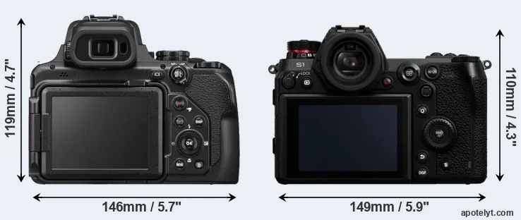 The above size and weight comparisons are to some extent incomplete and possibly misleading, as the P1000 has a lens built in, whereas the S1 is an interchangeable lens camera that requires a separate lens. Attaching the latter will add extra weight and bulk to the setup.