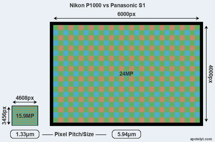 | Sensor Specs | Nikon P1000 | Panasonic S1 |