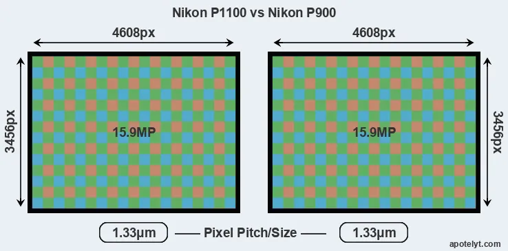 | Sensor Specs | Nikon P1100 | Nikon P900 |