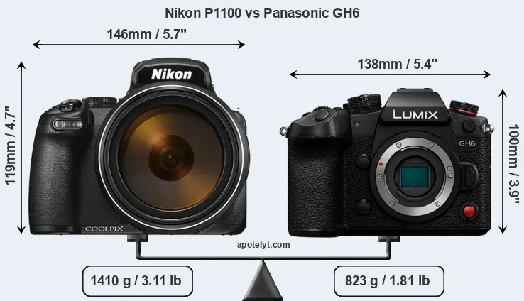 | Body Specs | Nikon P1100 | Panasonic GH6 |