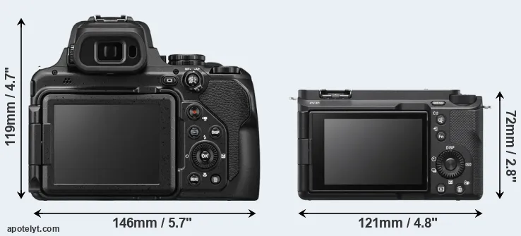The above size and weight comparisons are to some extent incomplete and possibly misleading, as the P1100 has a lens built in, whereas the ZV-E1 is an interchangeable lens camera that requires a separate lens. Attaching the latter will add extra weight and bulk to the setup. You can compare the optics available for the ZV-E1 and their specifications in the Sony FE Lens Catalog.