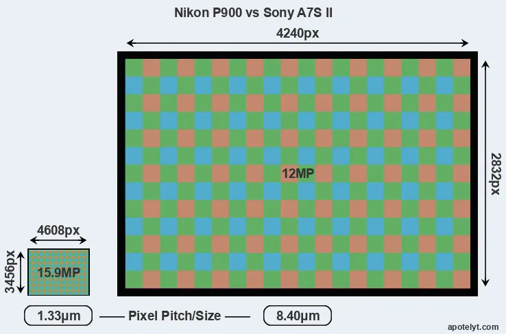 | Sensor Specs | Nikon P900 | Sony A7S II |
