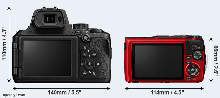 Size Nikon P950 vs OM System TG-7