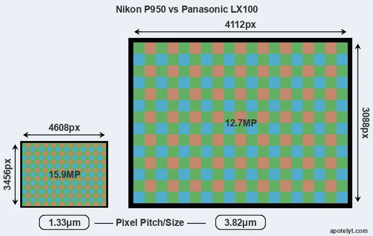 | Sensor Specs | Nikon P950 | Panasonic LX100 |