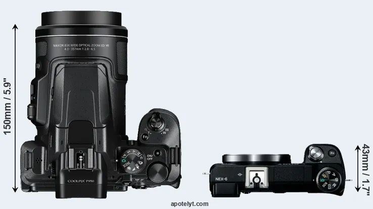 | Body Specs | Nikon P950 | Sony NEX-6 |