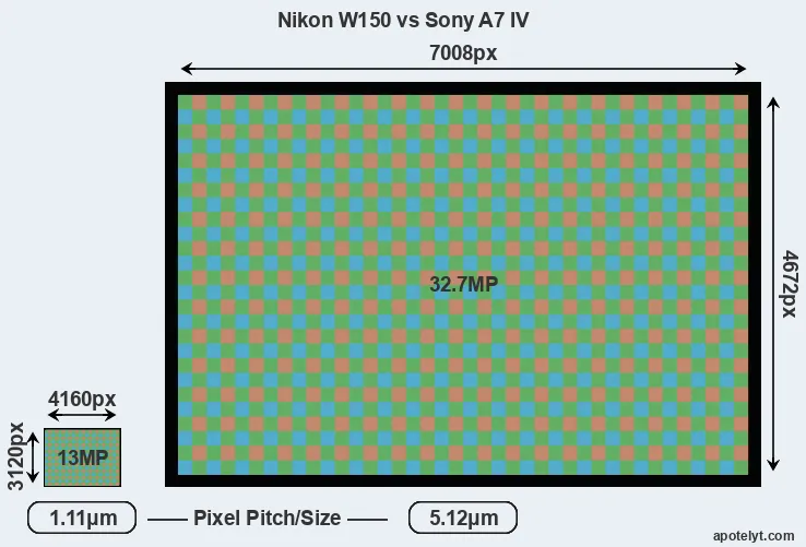 | Sensor Specs | Nikon W150 | Sony A7 IV |