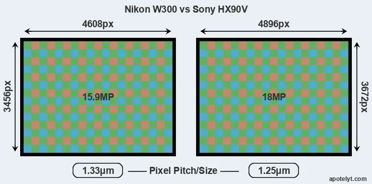 | Sensor Specs | Nikon W300 | Sony HX90V |
