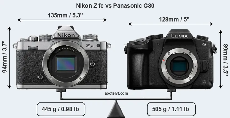 | Body Specs | Nikon Z fc | Panasonic G80 |