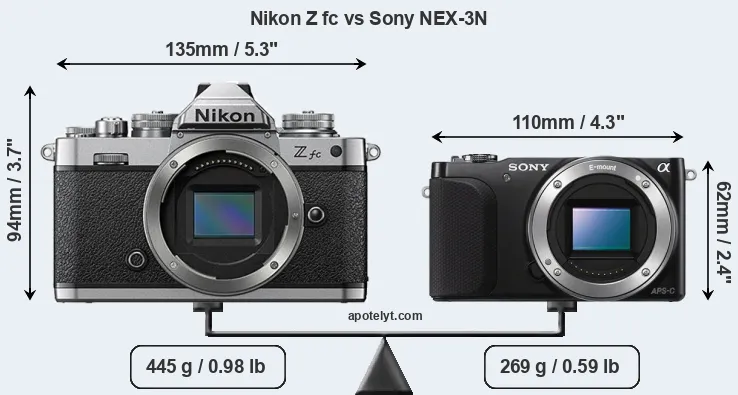 Size Nikon Z fc vs Sony NEX-3N