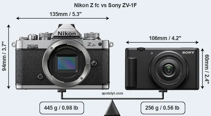 The Nikon Z fc and the Sony ZV-1F are two digital cameras that were announced, respectively, in June 2021 and October 2022. The Z fc is a mirrorless interchangeable lens camera, while the ZV-1F is a fixed lens compact. The cameras are based on an APS-C (Z fc) and an one-inch (ZV-1F) sensor. The Nikon has a resolution of 20.7 megapixels, whereas the Sony provides 20 MP.