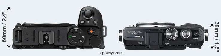 | 14. | Olympus E-PL6 | 111 mm | 64 mm | 38 mm | 325 g | 360 | n | May 2013 | US$ 599 | ebay.com | |