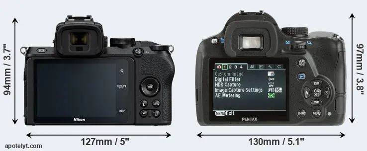 | Body Specs | Nikon Z50 | Pentax K-500 |