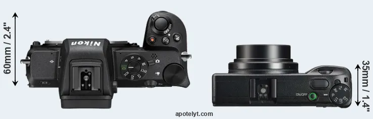 The above size and weight comparisons are to some extent incomplete and possibly misleading, as the GR IIIx has a lens built in, whereas the Z50 is an interchangeable lens camera that requires a separate lens. Attaching the latter will add extra weight and bulk to the setup.
