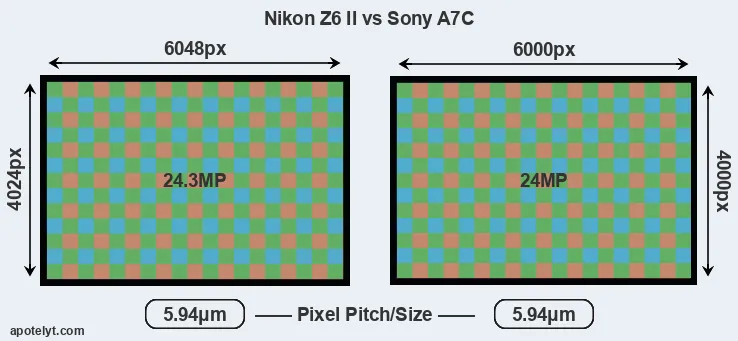 | Sensor Specs | Nikon Z6 II | Sony A7C |