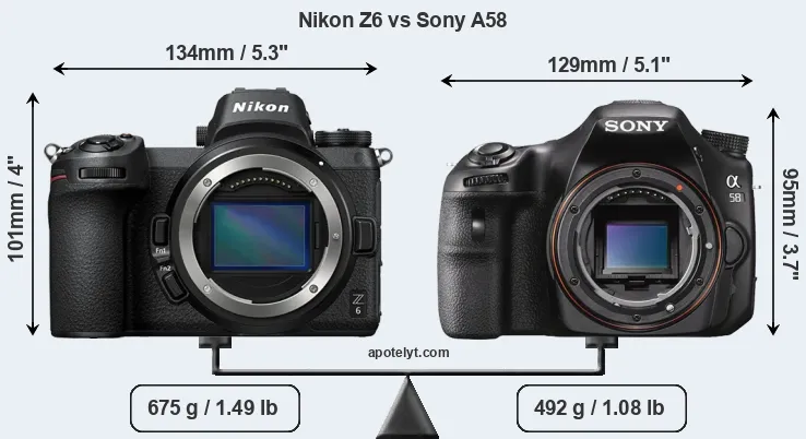 Size Nikon Z6 vs Sony A58