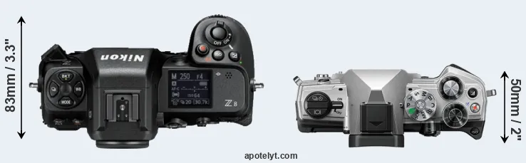 The OM-5 can be obtained in two different colors (black, silver), while the Z8 is only available in black.