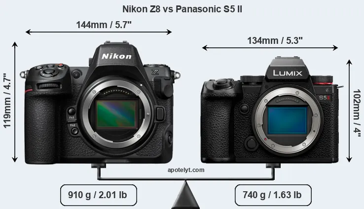 Size Nikon Z8 vs Panasonic S5 II