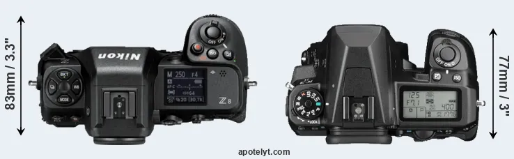 | 1. | Nikon Z8 | 144 mm | 119 mm | 83 mm | 910 g | 340 | Y | May 2023 | US$ 3 999 | amazon.com | |