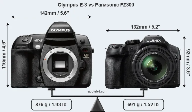 Size Olympus E-3 vs Panasonic FZ300