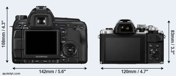 The above size and weight comparisons are to some extent incomplete since they do not consider the interchangeable lenses that both of these cameras require. Both cameras have similarly sized sensors, but DSLRs have a larger flange-to-focal plane distance than mirrorless cameras, which imposes contraints on the optical engineering process and generally leads to bigger and heavier lenses. You can compare the optics available for the two cameras in the Four Thirds Lens Catalog (E-30) and the Micro Four Thirds Lens Catalog (E-M10 II). Mirrorless cameras, such as the E-M10 II, have moreover the advantage that they can use many lenses from other systems via adapters, as they have a relatively short flange to focal plane distance.