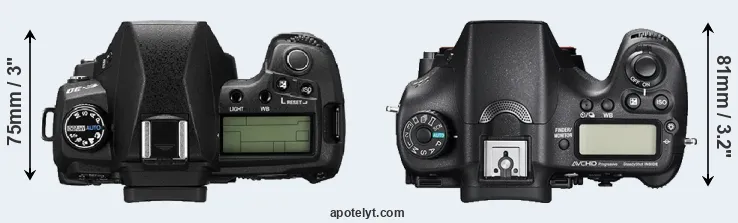 | 17. | Sony A77 | 143 mm | 104 mm | 81 mm | 732 g | 470 | Y | Aug 2011 | EUR 1 299 | ebay.com | |