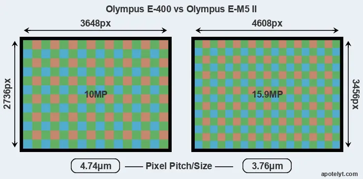 | Sensor Specs | Olympus E-400 | Olympus E-M5 II |
