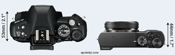 | Body Specs | Olympus E-420 | Panasonic TZ100 |