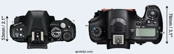 Sony A77 143 mm 104 mm 81 mm 732 g 470 Y Aug 2011 US$ 1 399ebay.com