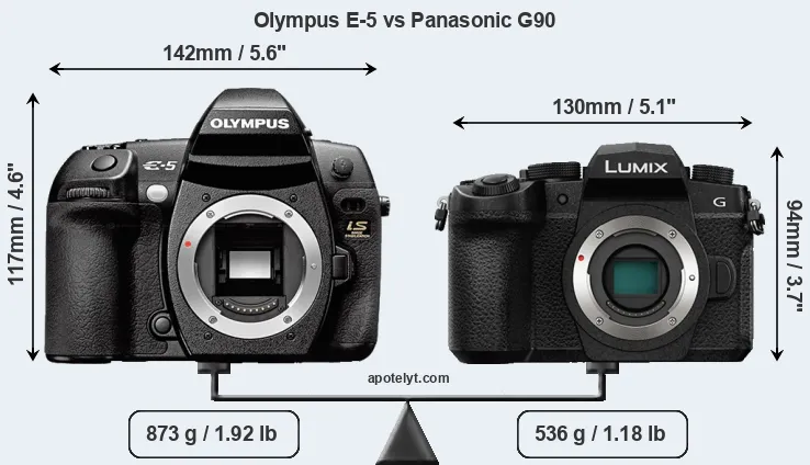 Size Olympus E-5 vs Panasonic G90
