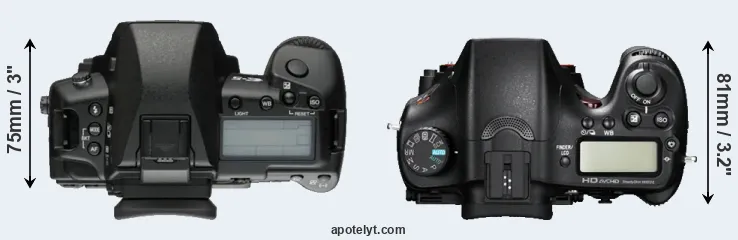 | 16. | Sony A99 | 147 mm | 111 mm | 78 mm | 812 g | 500 | Y | Sep 2012 | EUR 2 799 | ebay.com | |