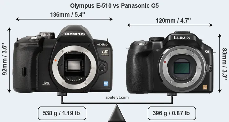 | Body Specs | Olympus E-510 | Panasonic G5 |
