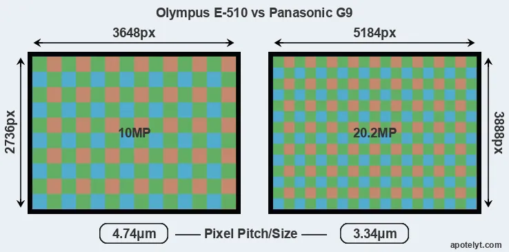 | Sensor Specs | Olympus E-510 | Panasonic G9 |