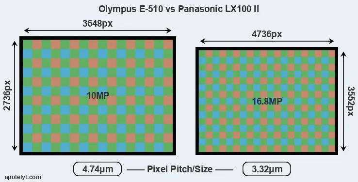 | Sensor Specs | Olympus E-510 | Panasonic LX100 II |