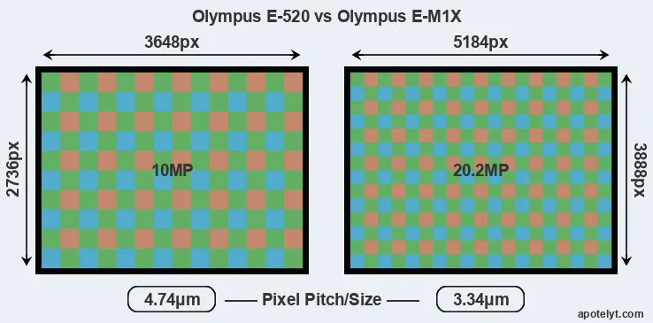 | Sensor Specs | Olympus E-520 | Olympus E-M1X |